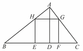 在 △ABC 中,边 BC=x,高 AD=y,四边形 EFGH 是边长为 a 的正方形,则有: